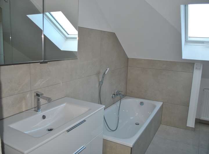 Im Haus gibt es zwei vollwertige Bäder, die modern ausgestattet sind. Zur Immobilie gehört außerdem eine separat stehende Garage. Die Einbauküche ist im Mietpreis enthalten.
