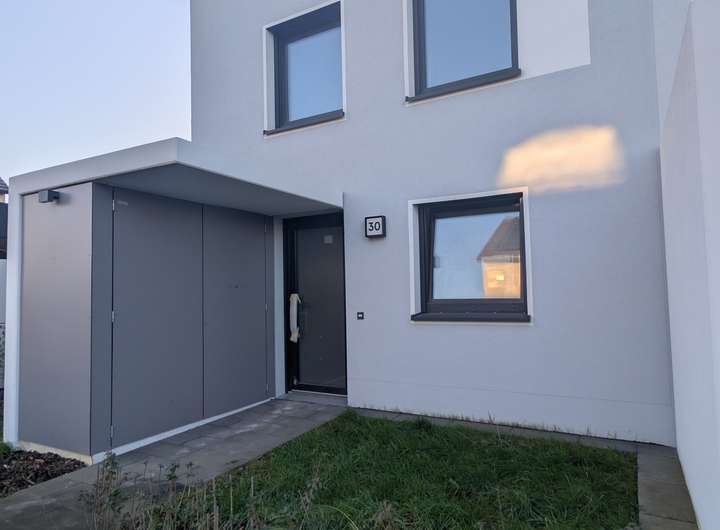 Das Haus liegt in einem Neubaugebiet am Standrand von Jülich.