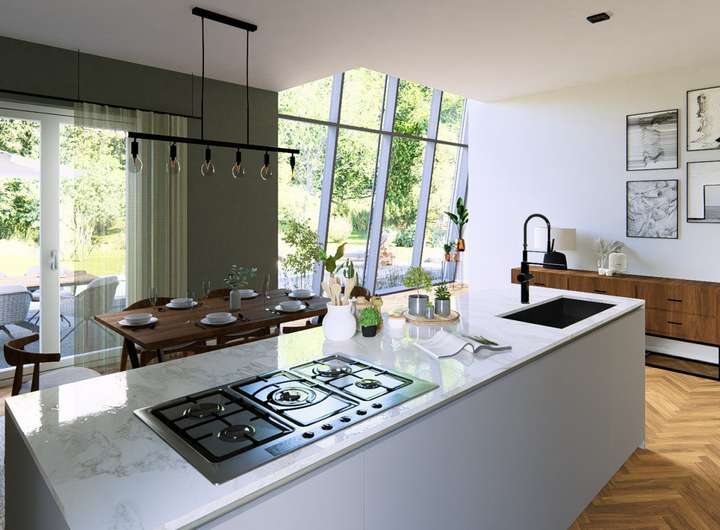 Das Baukonzept überzeugt durch hochwertige Bauweise und innovative Energietechnologien. Sie profitieren von den Vorteilen der KFW40 oder KFW55 Standards, die nicht nur umweltfreundlich sind, sondern auch Ihre Energiekosten nachhaltig senken. Die Verwendung einer hocheffizienten Luft-Wasser-Wärmepumpe sorgt für eine angenehme Wärme im Winter und kühle Räume im Sommer. Diese Befeuerungsart bietet Ihnen nicht nur eine hohe Energieeffizienz, sondern auch einen geringen CO2-Ausstoß, was gut für die Umwelt und Ihr Portemonnaie ist.