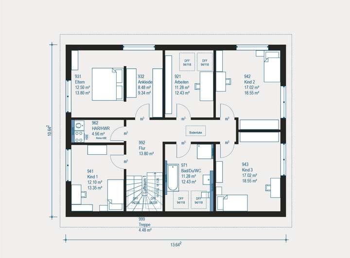 Das Konzept sieht vor, dass Sie den Innenausbau nach Ihren Vorstellungen umsetzen. Hierbei können Sie die gehobene Ausstattung wählen, insbesondere den Bodenbelag, der Ihnen ermöglicht, Ihren persönlichen Stil zum Ausdruck zu bringen. Ob Parkett, Fliesen oder Teppich - die Auswahl ist Ihnen überlassen! Die moderne Wärmepumpe sorgt für eine effiziente und umweltfreundliche Beheizung Ihrer neuen Immobilie, während die KFW40 und KFW55 Energietypen für niedrige Energiekosten und einen hohen Wohnkomfort stehen.