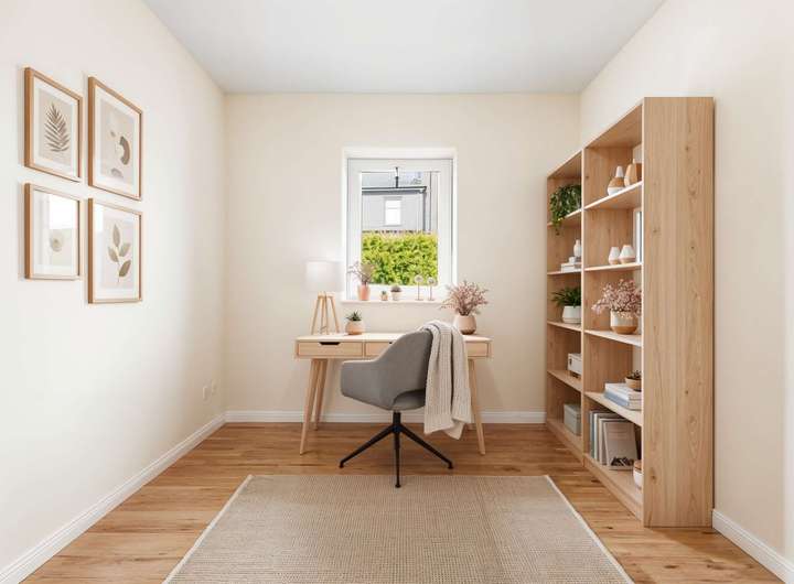 Ergänzt wird das Raumangebot im Erdgeschoss durch ein flexibel nutzbares Gästezimmer oder Büro sowie ein separates Gäste-WC – perfekt für Familienalltag, Homeoffice oder Besucher.