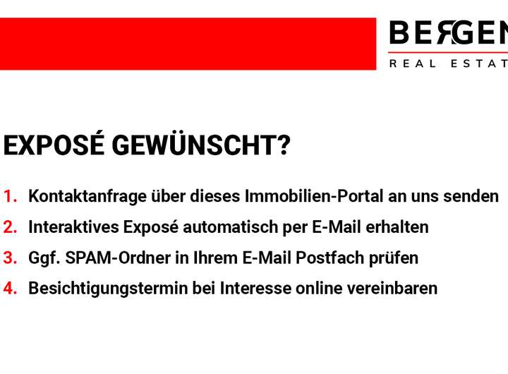 Wir bieten die Immobilie im qualifizierten Alleinauftrag an. Die Provision für den Käufer beträgt 7,14% inkl. der gesetzlichen Mehrwertsteuer des Kaufpreises und ist für den Käufer mit dem Zustandekommen des Kaufvertrages (notarieller Vertragsabschluss) verdient und fällig. Die vermittelnde und/oder nachweisende Bergen Real Estate GbR und ggf. deren Beauftragter, erhalten einen unmittelbaren Zahlungsanspruch gegenüber dem Käufer (Vertrag zugunsten Dritter, § 328 BGB). Alle Angaben sind ohne Gewähr und basieren ausschließlich auf Informationen, die uns von unserem Auftraggeber übermittelt wurden. Wir übernehmen keine Gewähr für die Vollständigkeit, Richtigkeit und Aktualität dieser Angaben. Die Weitergabe dieses Exposés an Dritte ohne unsere Zustimmung löst gegebenenfalls Courtage- bzw. Schadensersatzansprüche aus. Im Übrigen gelten unsere Allgemeinen Geschäftsbedingungen. Irrtum und Zwischenverkauf vorbehalten.