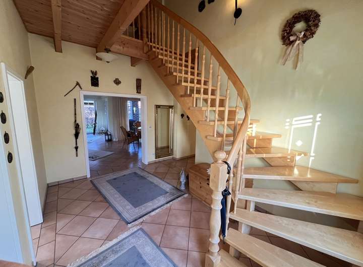 Durch Sichtbare Holzdecke im Erdgeschoss um die 2,80 Deckenhöhe, tolles Raumgefühl