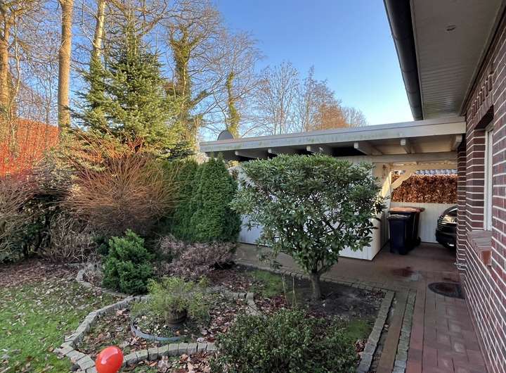 Diese äußerst ansprechende Immobilie überzeugt als massiv gebautes Einfamilienhaus in klassischer Klinkeroptik. Das Zusammenspiel aus rotem Ziegeldach, klarer Architektur und liebevoll gestaltetem Grundstück vermittelt bereits von außen Wertigkeit und Beständigkeit. Der Carport mit integriertem Fahrradabstellraum fügt sich harmonisch ins Gesamtbild ein.