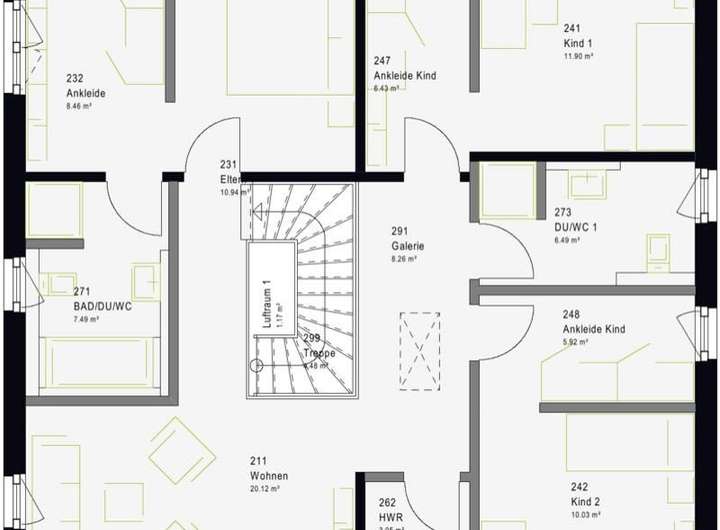 Gleichzeitig beeindruckt das Haus mit attraktiven Mehrwertzonen im Obergeschoss: Absolutes Highlight ist das weitläufige Elternschlafzimmer mit exklusiver Anbindung zur Ankleide und zu einem Wohlfühlbad.
