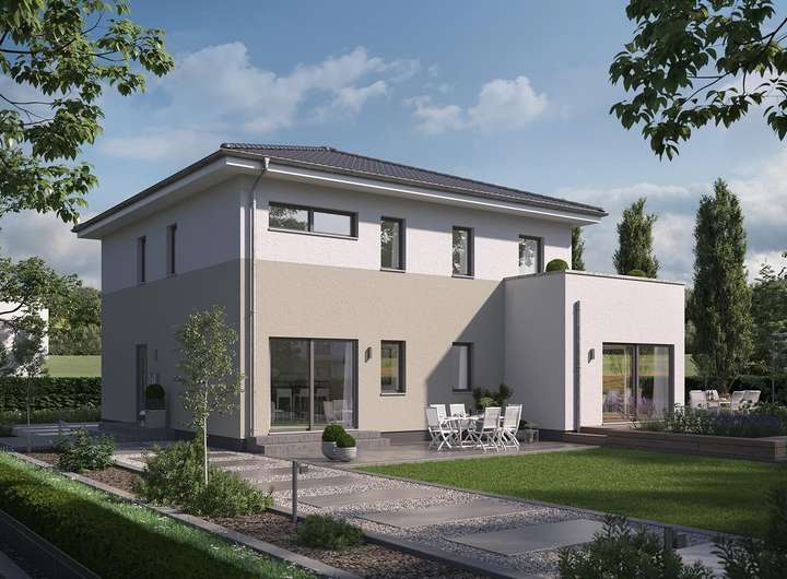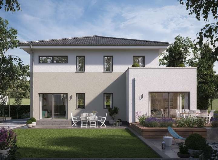 Das Mehrgenerationenhaus FamilyStyle 20.02 W überzeugt mit einem modernen, kubistischen Stil und viel Raum für seine Bewohner. Ein quadratischer Grundriss und ein formschönes Walmdach sind für seinen Charakter kennzeichnend. Großzügige Räume auf einer gesamten Nettogrundfläche von 206 m² bieten reichlich Platz für gemeinsames Wohnen und Leben mit individuellen Freiräumen.