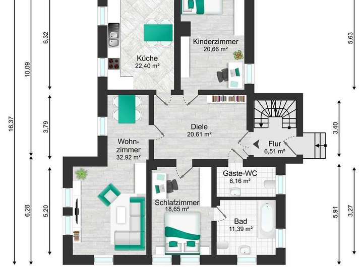 - 160 m² im EG mit eigenem Gartenanteil (ca. 300 m²) und Terrasse
