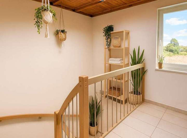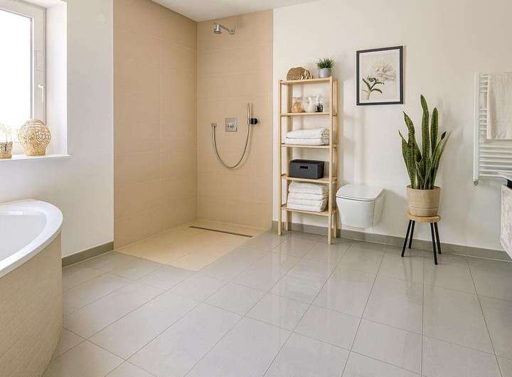 Das Badezimmer wurde ebenfalls saniert und bietet sowohl eine ebenerdige Dusche als auch eine moderne Badewanne. Hier kann man entspannen und den Alltagsstress hinter sich lassen.