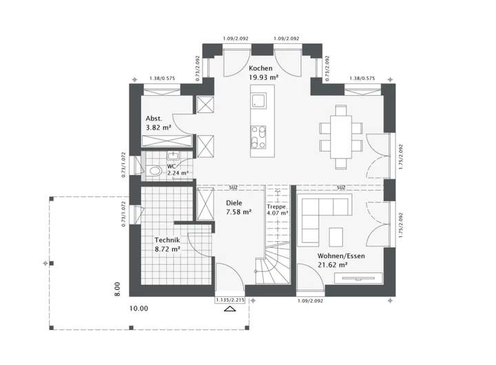 Diesem Angebot liegt die beliebte Danhaus-Ausbaustufe "technik-fertig" zugrunde. Diese kann selbstverständlich noch entsprechend Ihrer geplanten Eigenleistungen angepasst werden.