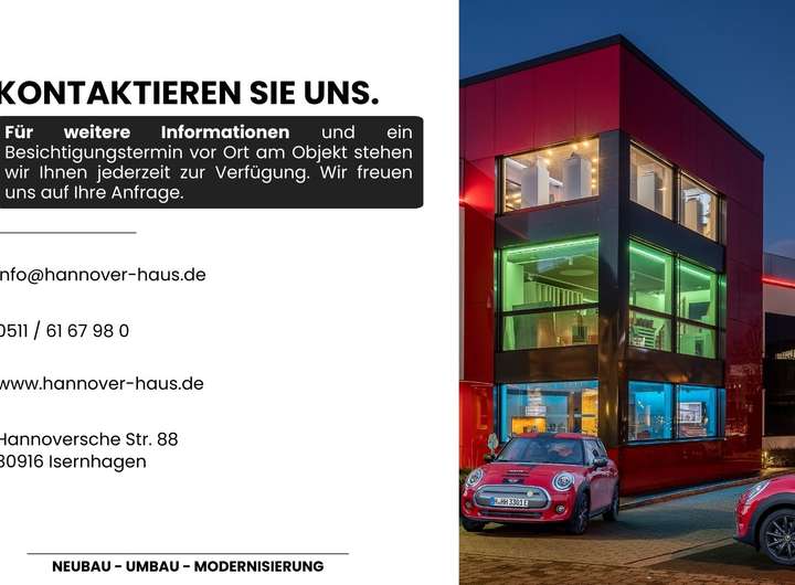 Unsere eigene Immobilienabteilung „HANNOVER HAUS IMMOBILIEN“ steht Ihnen auch gern beim Verkauf Ihrer Bestandsimmobilie zur Verfügung Sprechen SIe uns einfach an. Wir beraten Sie gerne.