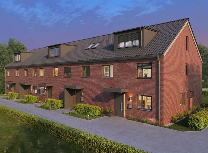 + Stilvolle Klinker-Fassade: Die stilvolle Fassade aus Klinker verleihtden Häusern eine zeitlose sowie moderne Eleganz und passt perfektin die Nachbarschaft.