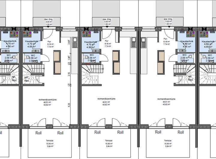 Die klimafreundlichen Häuser mit der Energieeffizienz AAA+ verfügen über eine exklusive Grundfläche von ca. 189 m² (Wohnfläche ca. 152 m²) bzw. bei den Endhäusern von 219 m² (Wohnfläche ca. 176 m²) mit großzügigen Grundstücksflächen je Haus von ca. 207 bis 377 m² zzgl. Gemeinschaftsflächen von anteilig je 60,4 m².