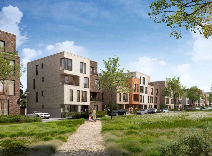 Das Wohnquartier Jenfelder Au ist auf einem weiteren ehemaligen Kasernen-Gelände entstanden, das mehr als 2.000 Menschen in modernen und individuellen Stadthäusern sowie Geschosswohnungen ein neues Zuhause bietet, das Ganze umgeben von ansprechend gestalteten Parks und Wasserflächen.