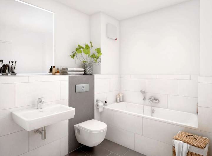 Die zwei modern ausgestatteten Badezimmer verfügen über eine Dusche und eine Badewanne sowie hochwertige Fliesen und Armaturen. Namhafte Hersteller der sanitären Einrichtung und der Blick für Details bieten wir hier als Standard.