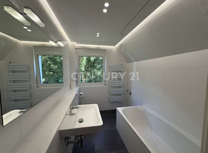 + stilvolles Badezimmer mit Wanne und Fenster