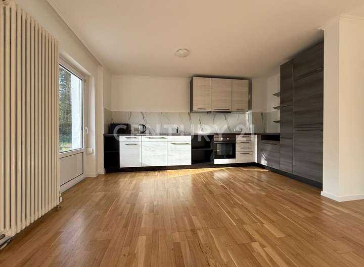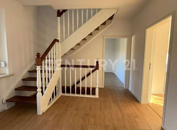 Die Einbauküche wurde mit neuen Elektrogeräten ausgestattet und bietet ausreichend Platz für gemeinsame Kochabende. Hochwertige Bodenbeläge in Holzoptik verleihen dem gesamten Erdgeschoss eine warme, natürliche Atmosphäre.