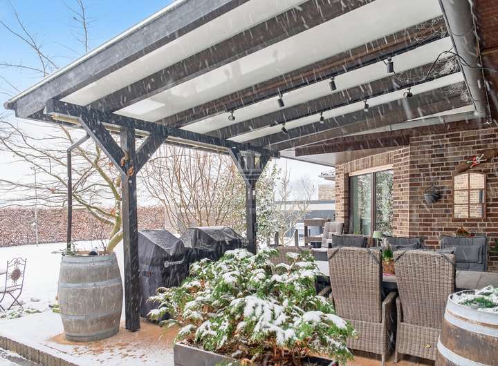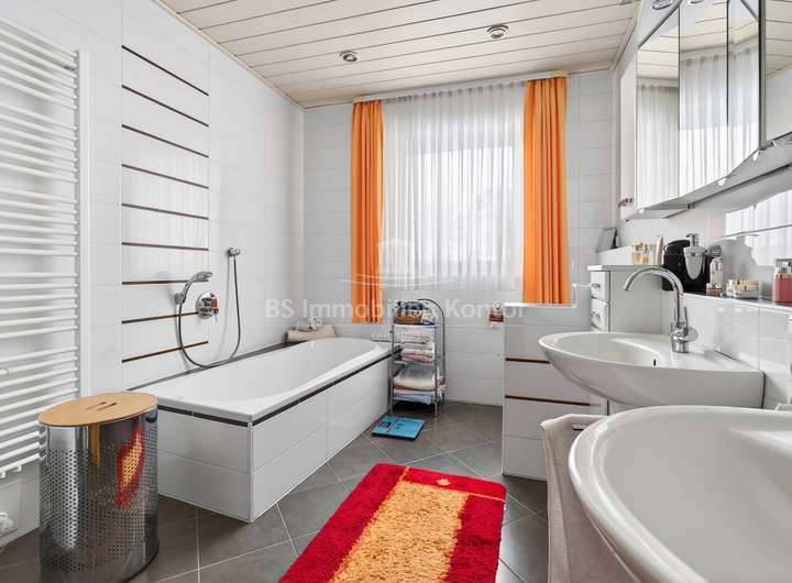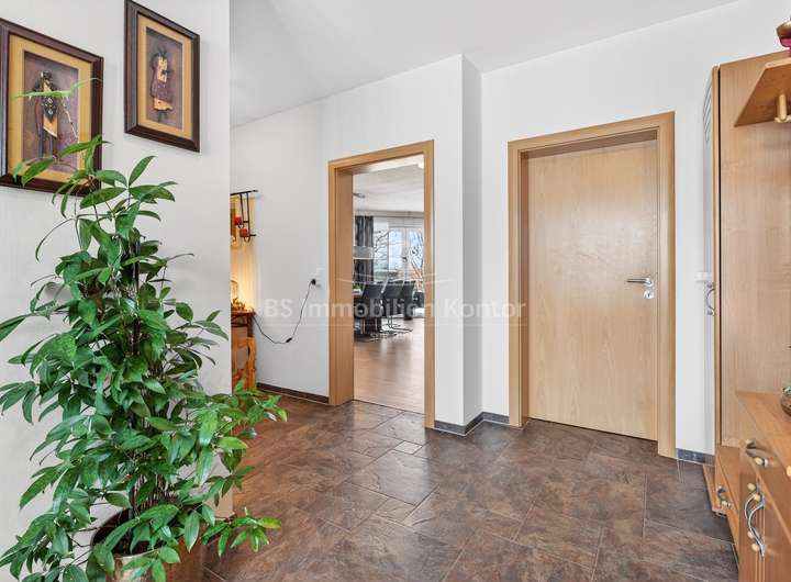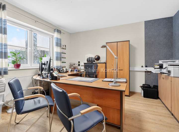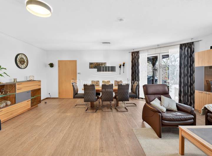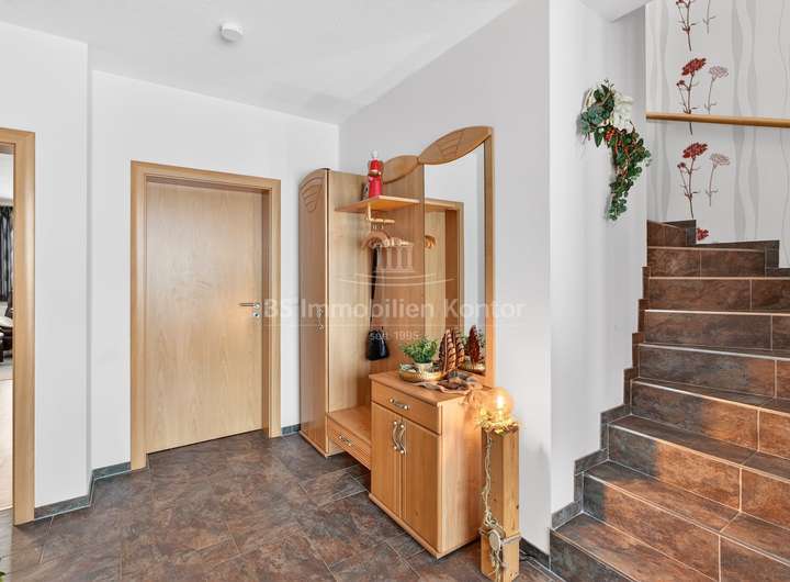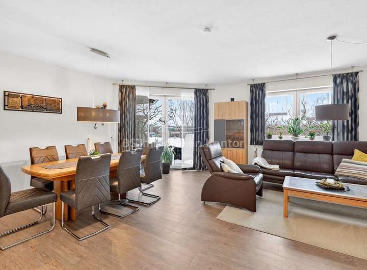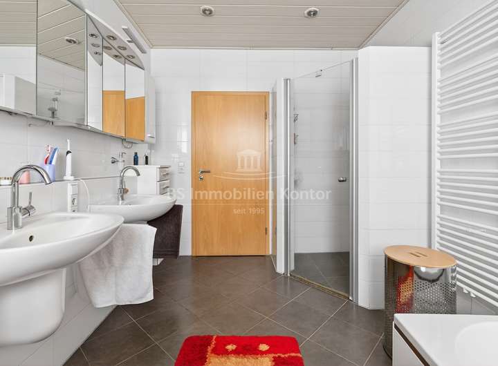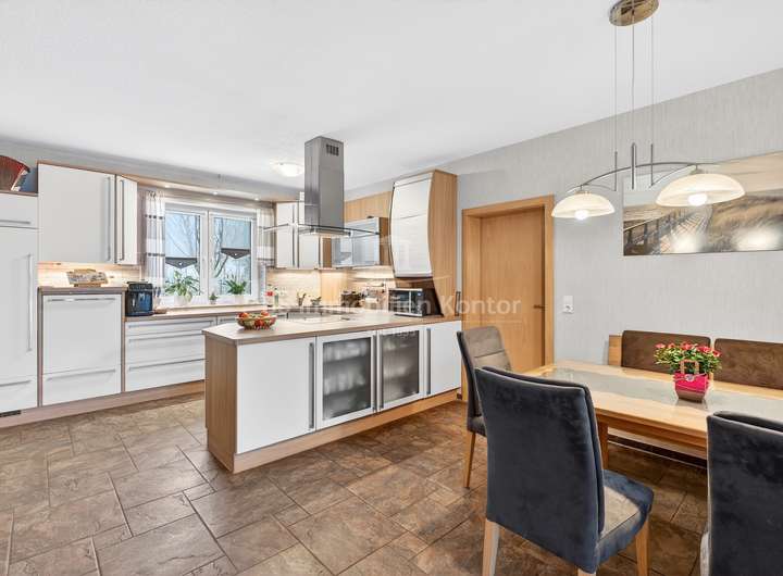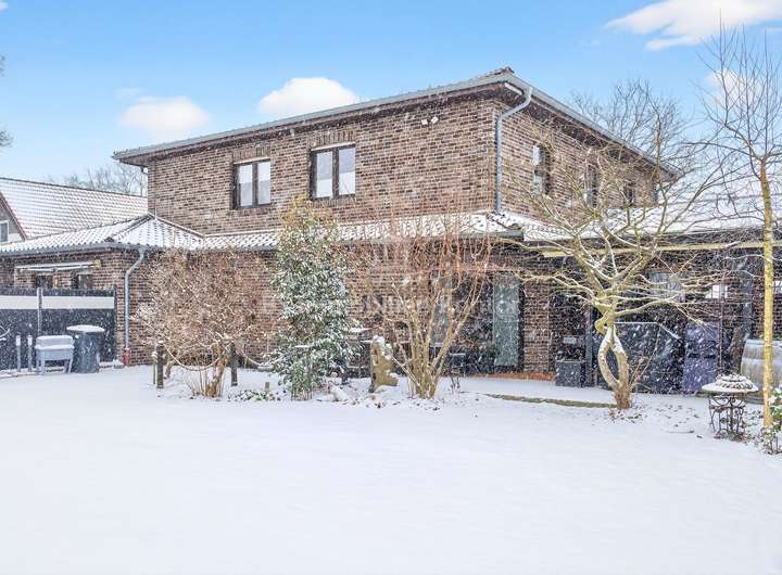 Dieses attraktive Einfamilienhaus mit ebenerdiger Einliegerwohnung wurde im Jahr 2006 erbaut und befindet sich in ruhiger Umgebung von Neurhede auf einem weitläufigen, sehr schön angelegten Grundstück von 1.402m², das vollständig mit Hecken und Sichtschutzzäunen eingefriedet ist. Die Gesamtwohnfläche von ca. 291m² bietet viel Raum für individuelle Wohnkonzepte, Mehrgenerationenwohnen oder die Kombination aus Wohnen und Vermieten. Das Haupthaus überzeugt durch seinen großzügigen Wohn- und Essbereich, eine moderne Küche mit integriertem Essplatz und einen einladenden Flur, der sofort ein Gefühl von Raum und Licht vermittelt. Im Erdgeschoss befinden sich neben dem Wohn- und Essbereich die Küche mit Essplatz, ein Büro oder weiteres Schlafzimmer, ein Hauswirtschaftsraum, der Heizungsraum, ein Gäste-WC und ein praktischer Abstellraum. Das Obergeschoss bietet ein komfortables Badezimmer, zusätzlichen Stauraum sowie vier großzügige Schlafzimmer. Eine überdachte Terrasse lädt zum entspannten Verweilen im Freien ein.