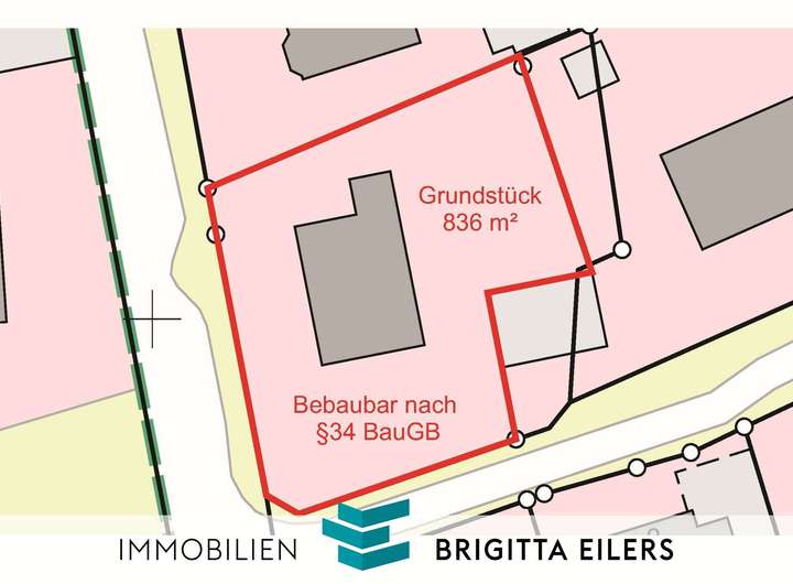 Das Grundstück liegt im unbeplanten Innenbereich und kann gemäß § 34 Baugesetzbuch (BauGB) bebaut werden. Demnach ist eine Bebauung zulässig, wenn sie sich hinsichtlich Art und Maß der baulichen Nutzung, der Bauweise sowie der überbaubaren Grundstücksfläche harmonisch in die nähere Umgebung einfügt. Eine orientierende Bebauung entsprechend der umliegenden Nachbarbebauung ist somit grundsätzlich möglich.