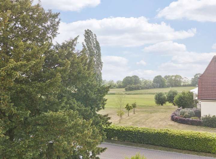 Nur wenige Schritte entfernt breitet sich die weite, sanft fließende Marschlandschaft aus – ein Paradies für Spaziergänger, Radfahrer und alle, die die Ruhe der Natur lieben. Der Blick ins Grüne, das Zwitschern der Vögel am Morgen, die klare Luft: Hier beginnt jeder Tag mit einem Gefühl von Freiheit und Geborgenheit.