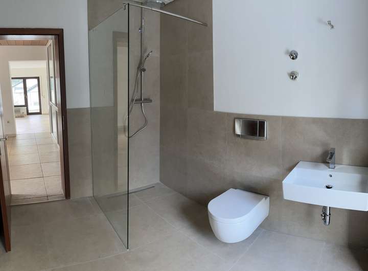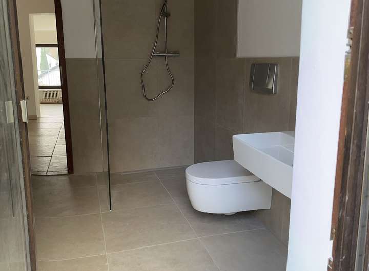 Natursteinfliesen, Parkett, Laminat, neue und gehobene Bäder, neuer Balkon sowie neue Einbauküche. Glasfaseranschluss vorhanden.