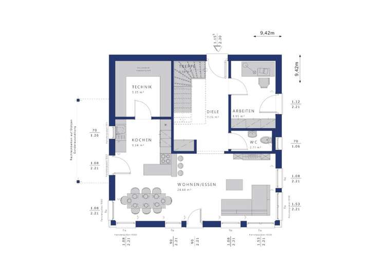 + Ausführung als Effizienzhaus 55, nach Ihrer Wahl selbstverständlich auch als Effizienzhaus 40 oder 40 plus,