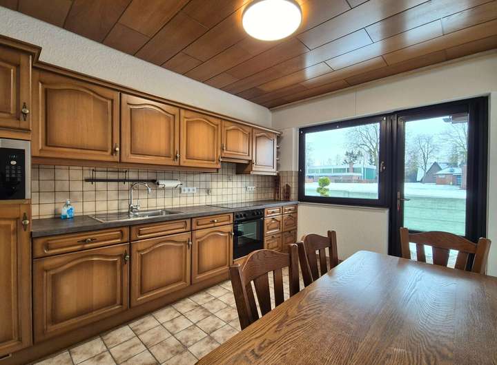 Die Küche des Hauses lädt zum Backen, sowie zum Kochen ein und ermöglich den Zugang in den gepflegten Garten.