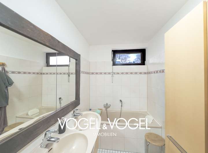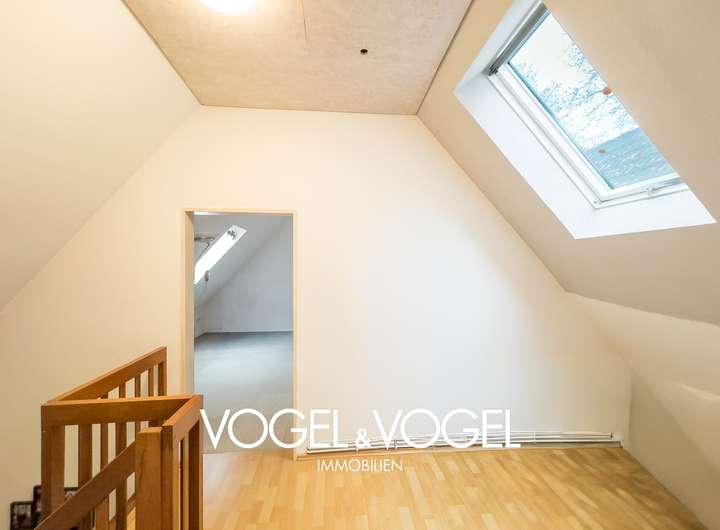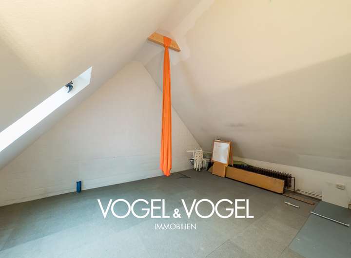 Das helle Tageslichtbad ist weitgehend im Originalzustand und eröffnet Ihnen die Möglichkeit, eigene moderne Akzente zu setzen. Der ausgebaute Dachboden erweitert die Wohnfläche um zwei weitere Zimmer – ideal für Gäste, Homeoffice oder kreative Rückzugsbereiche.