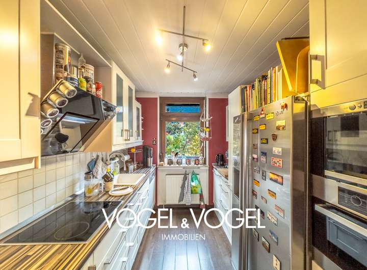 Schon beim Betreten des Hauses zeigt sich die einladende Atmosphäre: Vom Windfang gelangen Sie in den großzügigen, hellen Wohn- und Essbereich, der mit großen Fensterfronten viel Tageslicht hereinlässt und einen direkten Blick in den Garten bietet. Dieser zentrale Wohnraum bildet das Herzstück des Hauses und eignet sich perfekt für gemütliche Abende, gemeinsame Mahlzeiten oder entspannte Momente. Die angrenzende Küche bietet Raum für individuelle Gestaltungsideen; die vorhandene Einbauküche wird nicht mit übergeben.