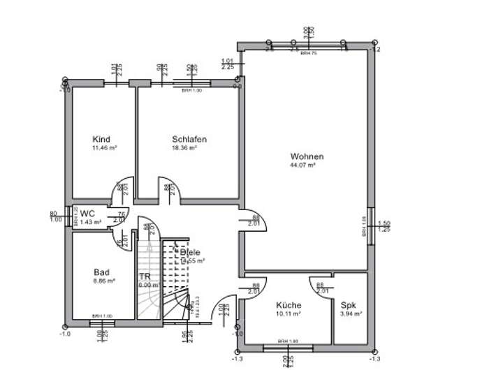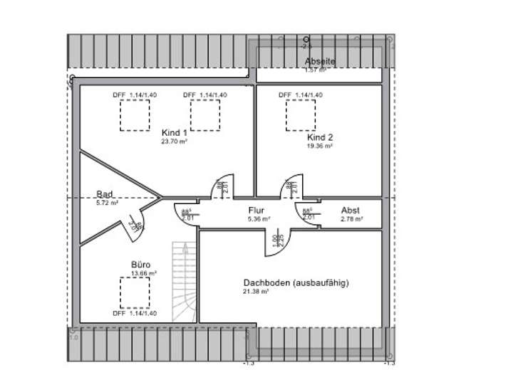 Auf einer Ebene im Erdgeschoss befindet das große Wohn-/Esszimmer und die Küche mit Speisekammer, sowie Schlaf- und 1 Kinderzimmer und Bad / WC. Das Dachgeschoss ist voll ausgebaut und verfügt über 1 Bad, Abstellraum, Galerie und 2 weitere große Kinderzimmer, sowie einem weiteren Raum als Ausbaureserve.