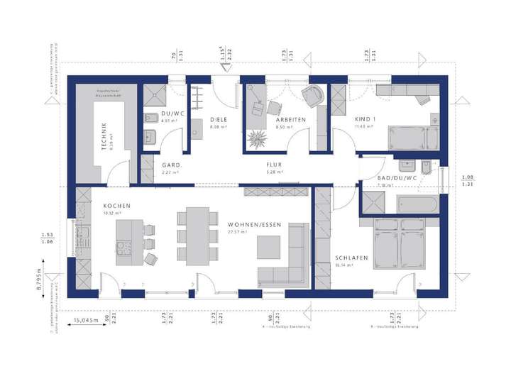 Statt Technikraum gibt´s im Erdgeschoss dann einen Abstellraum.