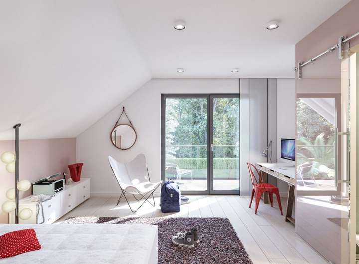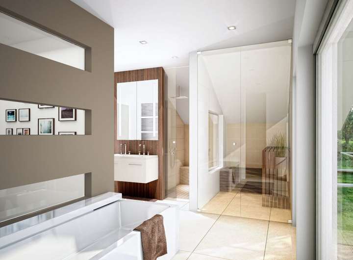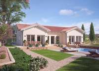 mit überaus ansprechender Architektur. Neben tollen Erkerlösungen, die noch mehr Wohnraum und einladende Terrassensituationen schaffen, lassen sich mit diversen Architektur-Bauteilen vielfältige architektonische Stile verwirklichen. Und zwar entweder mit Sattel-, Walm- oder Flachdach. Alle Grundrissvarianten dieses Eingeschossers funktionieren ohne Keller.