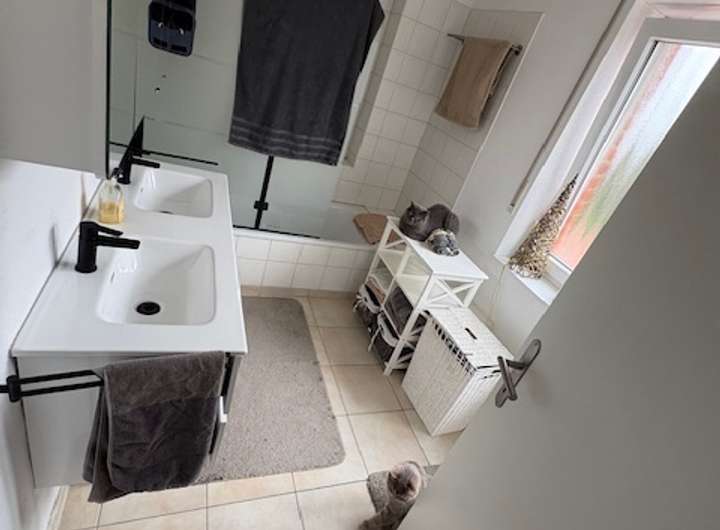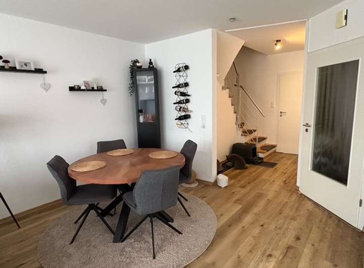 Diese gepflegte Doppelhaushälfte mit ca. 106 m² Wohnfläche und 4 Zimmern steht ab dem 01.02.2026 zur Vermietung. Das Haus wurde 2003 erbaut. Das Wohnzimmer im EG hat eine große Fensterfront nach Süden. Der Wohnbereich erstreckt sich über drei Etagen und bietet zwei Badezimmer mit Außenfenstern. Haustiere sind nach Absprache erlaubt. Es gibt einen frostfreien Dachboden und einen Schuppen. Der Garten ist mit einer großen Terasse nach Süden ausgerichtet. Auf der Nordseite gibt es auch einen kleinen Garten, der von der Küche aus zugänglich ist.