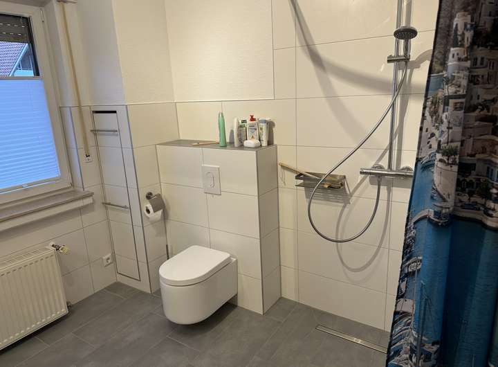 - neues Badezimmer (2024) mit bodengleicher Dusche und Fenster