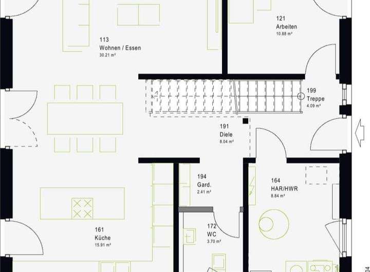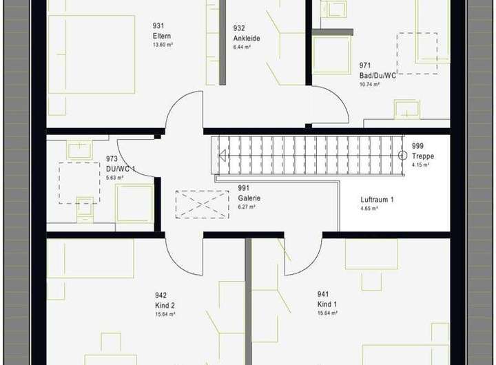 Die Raumaufteilung ist äußerst smart sowie gleichermaßen exklusiv und bietet Platz für die gesamte Familie, der Grundriss ist dennoch weiterhin flexibel auf Ihre Wünsche veränderbar. Im EG gibt es einen großzügigen und offenen Wohn-/Ess-Bereich, die Küche, ein Gäste-Bad sowie ein großes Büro. Im OG gibt es eine wunderschöne Galerie mit einem schön offenen Flurbereich mit zwei Kinderzimmern mit eigenem Duschbad. Die Eltern haben einen sehr exklusiven eigenen Bereich für sich, der sich in Elternschlafzimmer mit angrenzender Ankleide sowie einem eigenen Elternbad aufzeichnen.