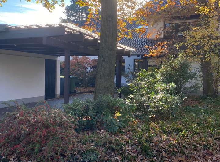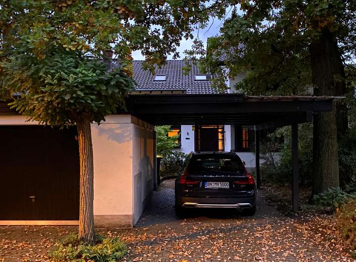 Zum Haus gehören außerdem eine Garage und ein überdachter Stellplatz direkt vor dem Eingang.