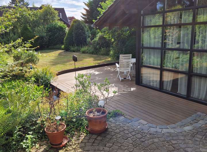 Das Einfamilienhaus ist besonders gut geeignet für eine Familie mit 2-3 Kindern, da es über 4 Schlafzimmer und 3 Bäder sowie einem großen eingewachsenen Garten mit großer Terrasse verfügt. Der Garten enthält einen Gartenteich, bei dem eine (derzeit demontierte) Absperrung für Kleinkinder bereits vorhanden ist.