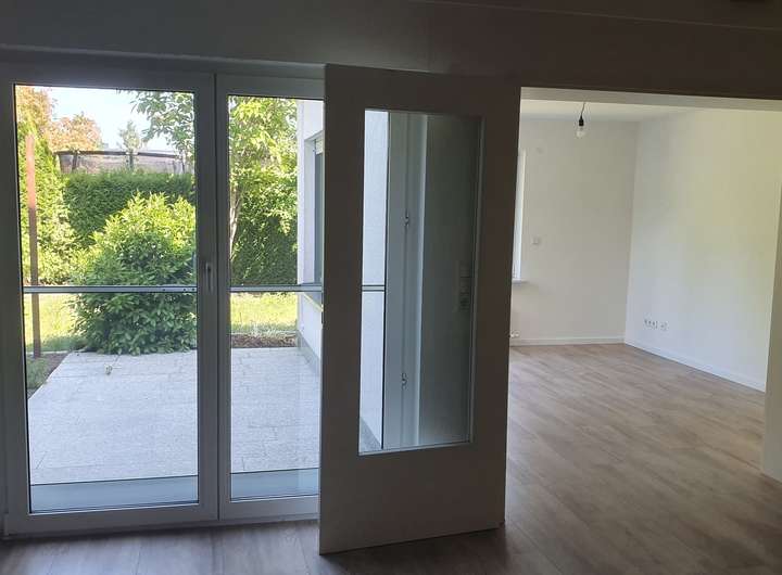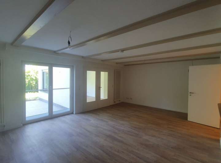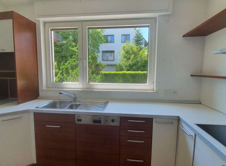 Ebenfalls noch im Kellergeschoss befindet sich eine kleine integrierte Zweizimmerwohnung (für größere Kinder, Haushaltshilfe oder Großeltern mit sep. Eingang aber auch Zugang zu Haupthaus) mit der Möglichkeit für eine Kochnische, neuem Duschbad und Klimaanlage. Es besteht auch die Option durch den Kellerflur ins Erdgeschoss zu gelangen. Der direkte Zugang zur Gartenterrasse und Garten rundet das Kellergeschoss ab.