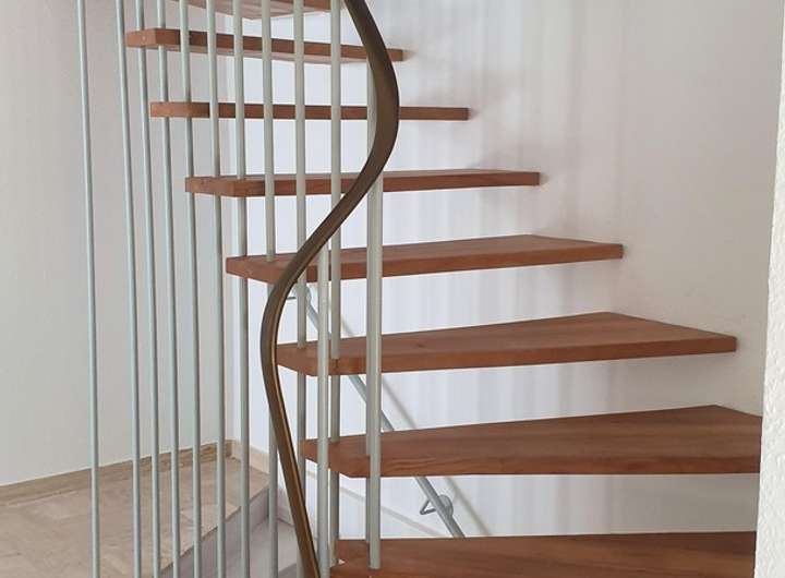 Über eine hochwertige Holztreppe gelangen Sie in die erste Etage. Hier befinden sich zwei große Schlafzimmer für Eltern und Kinder (auch teilbar z.B. für ein Arbeitszimmer) sowie ein kleiner Abstellraum und ein Badezimmer. Die Nutzungsmöglichkeiten sind sehr vielfältig.