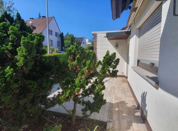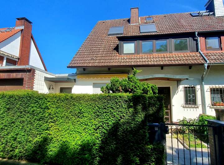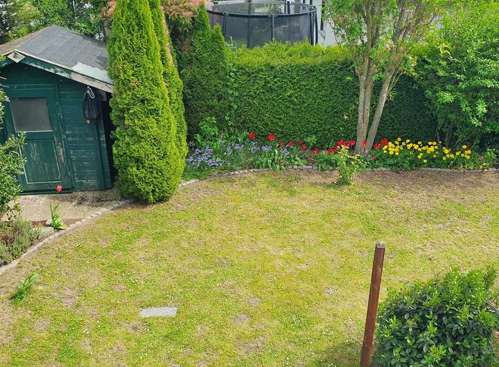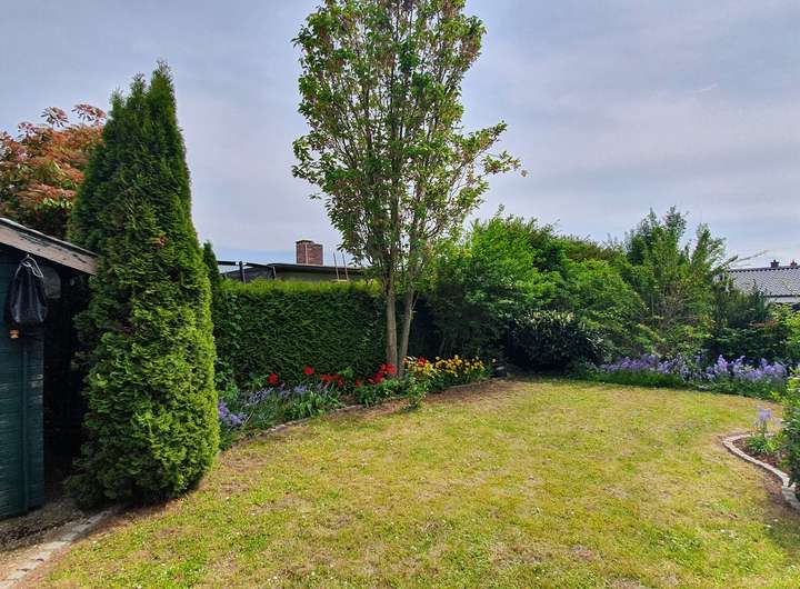 Ein kleiner gepflegter Garten mit Gartenhäuschen sowie ein Vorgarten mit großzügiger Sonnenterrasse lassen viel Raum für Kinder. Dieser uneinsehbarer Vorgarten bietet zusätzliche Privatsphäre. Zusätzlich gibt es zwei weitere Terrassen hinter dem Haus.