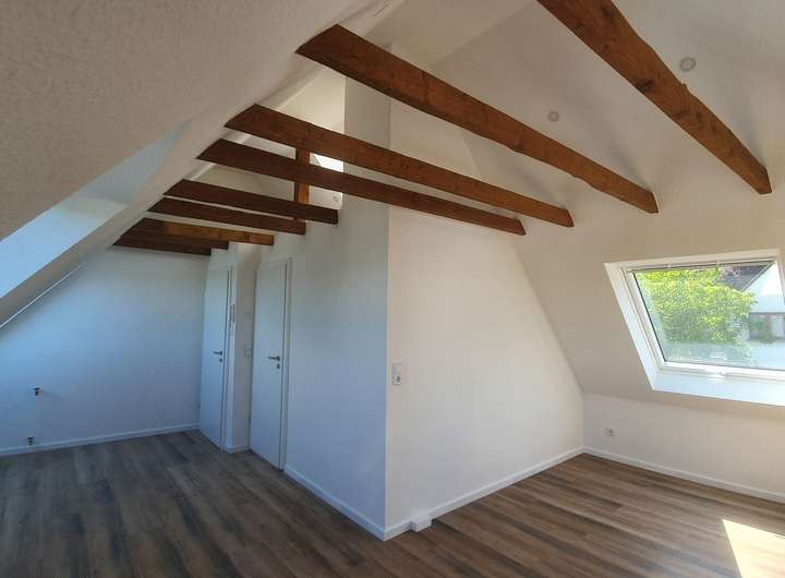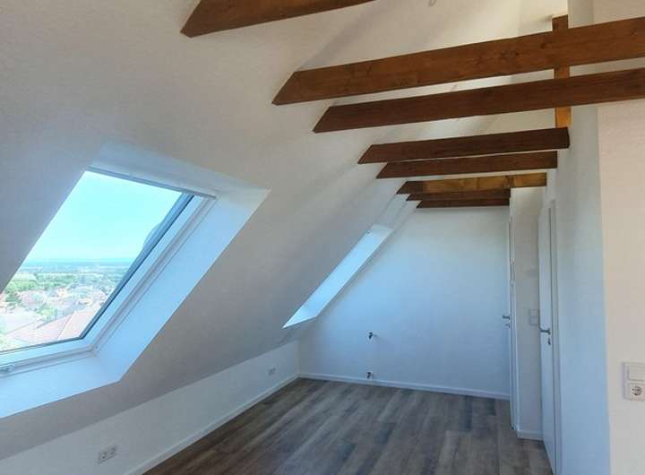In der zweiten Etage befindet sich das Dachgeschoß mit großem Wohn / Schlafraum, neuem Bad und herrlichem Blick über das Rhein Main Gebiet.