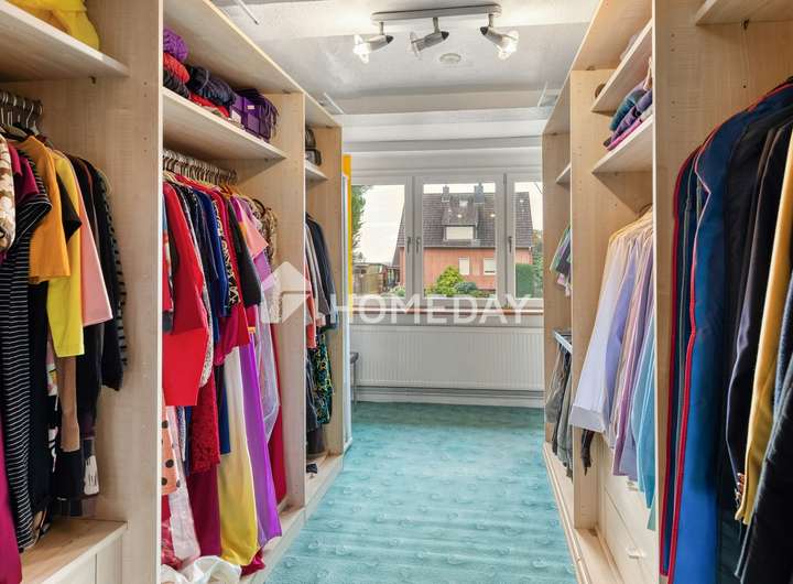 Das erste Obergeschoss beherbergt den privaten Rückzugsbereich der Familie. Hier stehen drei Kinderzimmer, ein Elternschlafzimmer mit angrenzendem Ankleidezimmer sowie zwei gepflegte Badezimmer zur Verfügung. Ein weiteres Zimmer und mehrere Abstellräume bieten flexible Nutzungsmöglichkeiten, etwa als Homeoffice oder Hobbyraum.