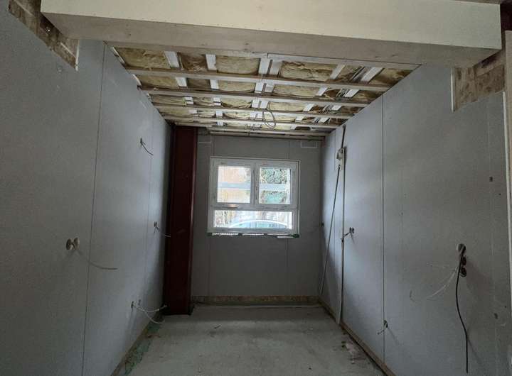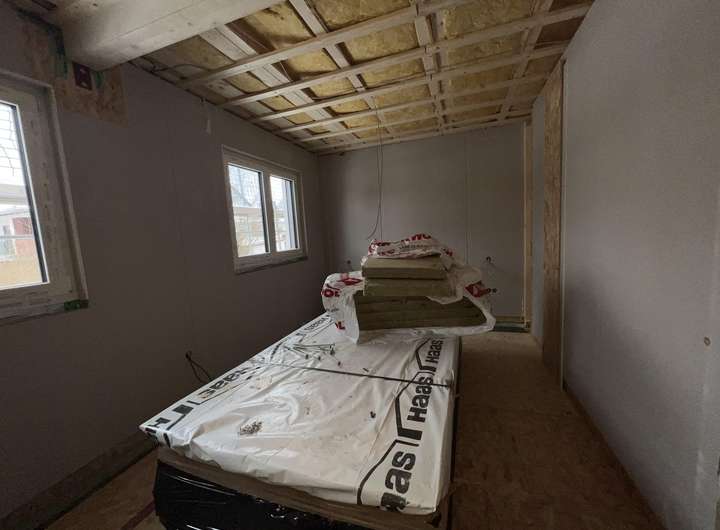 Der Rohbau ist fast fertig. Der Innenausbau fängt im Januar an.