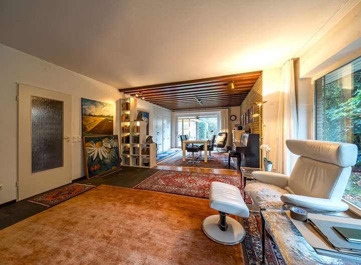 Zur Wohnfläche kommen die Nutzflächen der großen Garage und des Kellers in Höhe von etwa 112 m² hinzu.