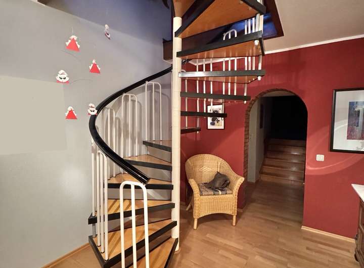 Beide Wohnungen verfügen über einen separaten Eingang, sind aber bei Bedarf über das Treppenhaus miteinander verbunden. So hat jede Wohnung seinen eigenen Bereich, ohne sich gegenseitig zu stören, lässt sich aber auch innerfamiliär gut miteinander verbinden.