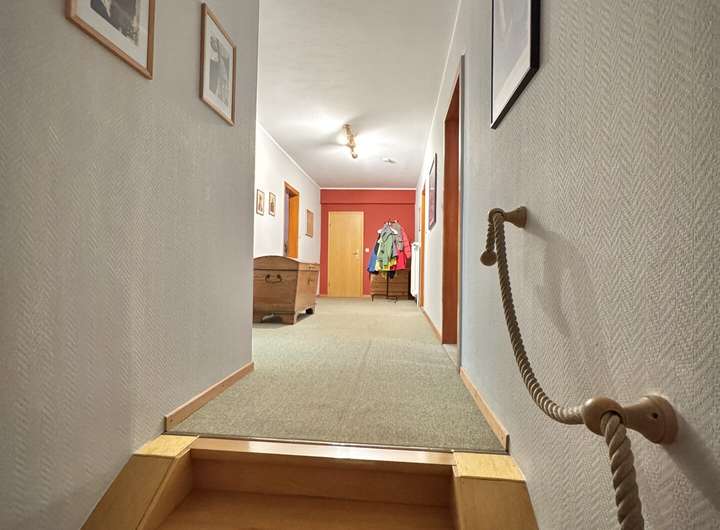 In den 1970er Jahren wurde durch einen Durchbruch die Wohnung im Parterre zusammengelegt. Weiter ca. 83 m² ergeben 4 Schlafzimmer (1 davon ehem. Küche), eine große Diele und 1 Wannenbad wurden zur Hauptwohnung erweitert. Hier wäre ein Rückbau zu einer 3. Wohneinheit möglich.