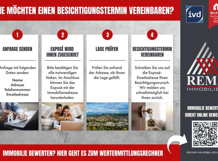 Mit der Anfrage bei und durch Inanspruchnahme der Dienstleistung der Firma REMS Immobilien GmbH wird ein Maklervertrag geschlossen. Sofern es durch die Tätigkeit der Firma REMS Immobilien GmbH zu einem wirksamen Hauptvertrag mit der Eigentümerseite kommt, hat der Interessent bei Abschluss eines KAUFVERTRAGS die ortsübliche Provision/Maklercourtage an die Firma REMS Immobilien GmbH gegen Rechnung zu zahlen.