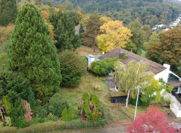 Das Grundstück liegt am oberen Ende einer wenig befahrenen Anliegerstraße und bietet durch seine erhöhte Position einen besonders freien Blick über Fischbach und den Taunus.