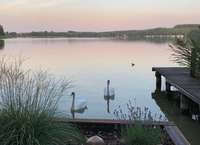 Übernachten können Sie in einer Bungalowhälfte aus den 60er Jahren ca. 20 m² Nutzfläche - hier 1 Zimmer mit Seeblick und eine ausgestattete Küche. Separat ein Toilettenhäuschen mit Dusche. Auch ein Stellplatz für 1 Pkw ist vorhanden.