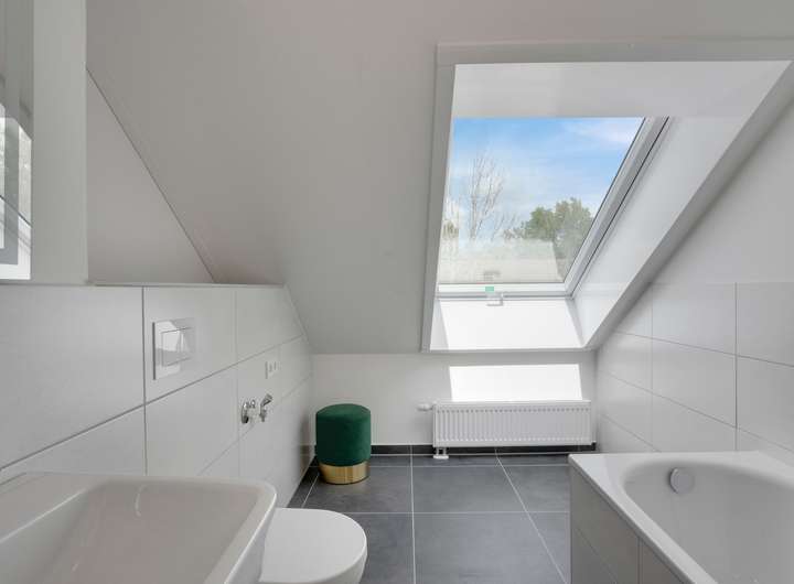 Das erste Obergeschoss mit ca. 40 m² umfasst zwei gut geschnittene Zimmer, ein modernes Bad sowie einen praktischen Hauswirtschaftsraum. Im Dachgeschoss stehen auf ca. 30 m² ein weiteres Zimmer, ein zusätzliches Bad sowie ein Abstellraum zur Verfügung, wodurch auch hier ein hohes Maß an Komfort und Flexibilität gewährleistet wird.