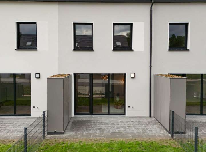 Alle Einheiten sind mit modernen Vinylböden, hochwertigen Sanitärarmaturen und zeitgemäßen Einbauküchen ausgestattet. Zu jeder Einheit gehören zudem zwei Lagereinheiten – eine im Garten sowie eine vor dem Haus, die gleichzeitig als stilvolle Abtrennung zwischen den einzelnen Häusern dienen und das harmonische Gesamtbild der Anlage unterstreichen.